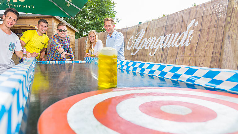 In den warmen Monaten könnt Ihr Euch unter freiem Himmel hohe Ziele stecken, Maßkrüge schieben oder eine Runde auf's Green gehen.