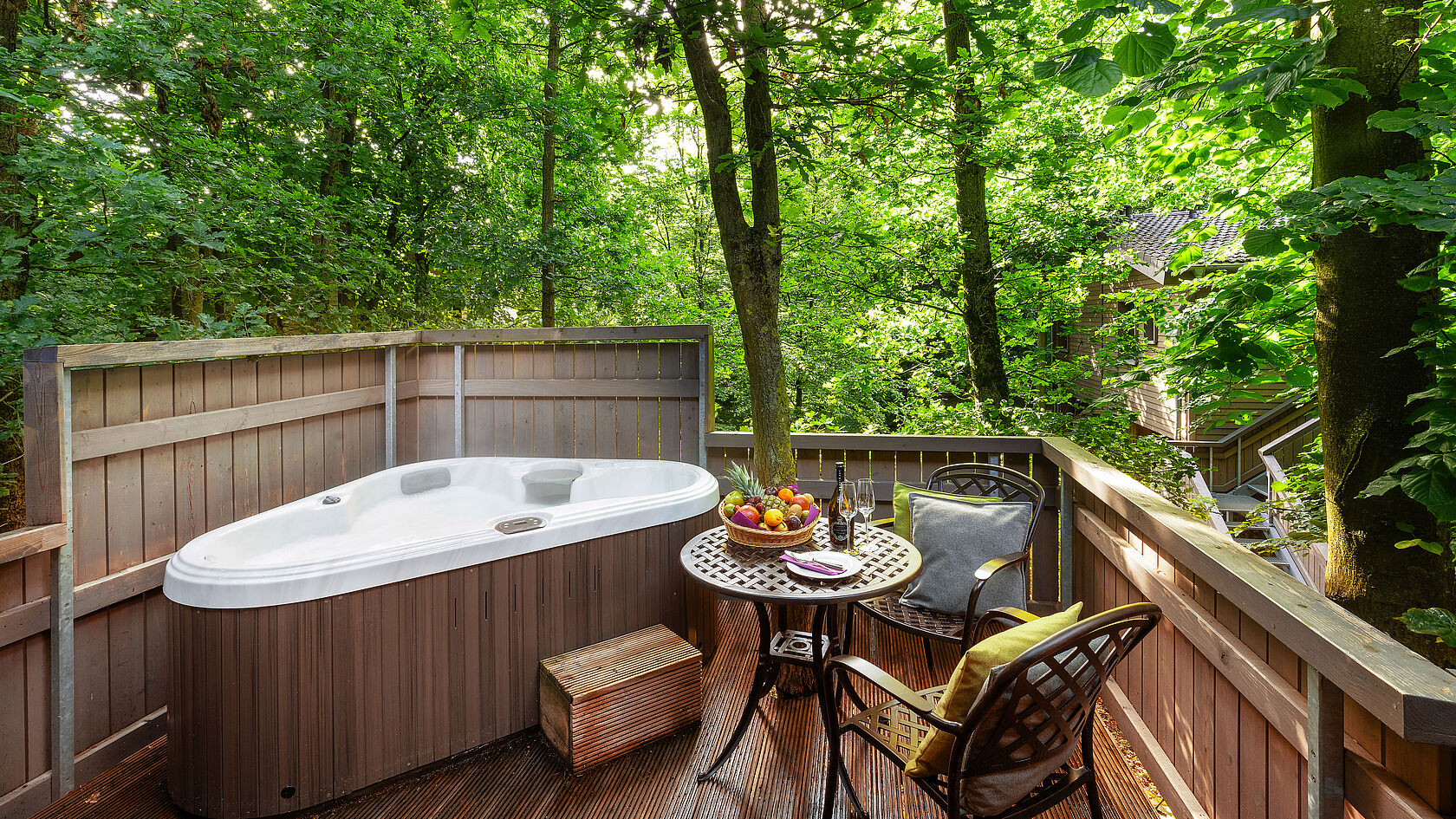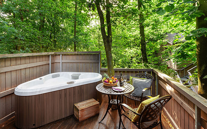 Bestaune die Abenddämmerung aus einem unserer drei Abendrot-Chalets. Erlebe die Natur in Deinem hochwertigen Outdoor-Whirlpool mit Massagefunktion das ganze Jahr über. So lässt sich der Alltag ganz leicht vergessen.
