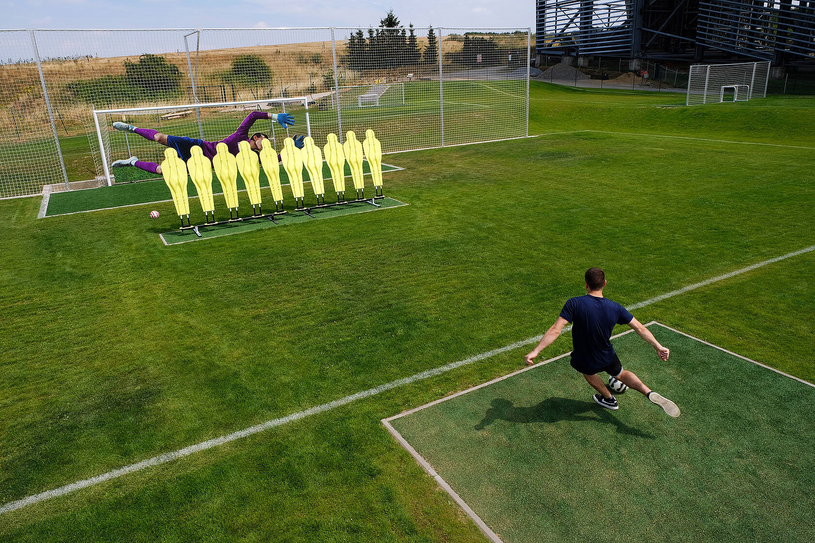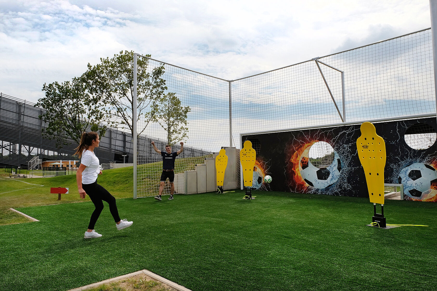 14 Spielfelder, ein Ziel. Ähnlich wie Fußballgolf, nur muss der Ball auf unserer einzigartigen FunFußball-Anlage mit möglichst wenigen Schüssen im Tor versenkt werden.